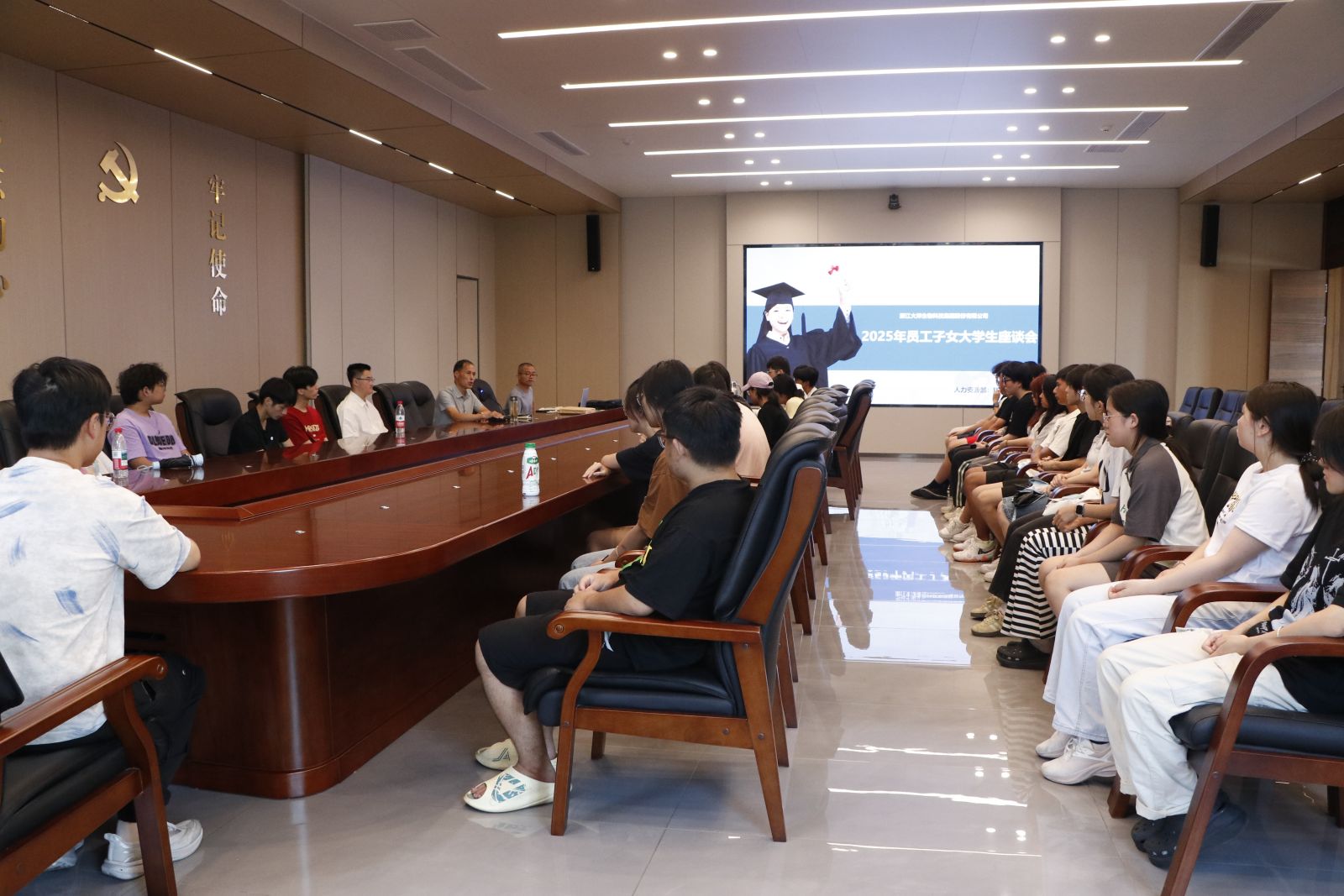 8月18日,一场以关爱员工大学生子女为主题的座谈会顺利召开。此次座谈会不仅为员工子女们搭建了一个相互交流的平台,更彰显了公司对员工及其家庭的深切关怀。人力资源部部长李渊、人力资源部顾问钱建春出席了本次座谈会,与员工大学生子女们亲切互动。